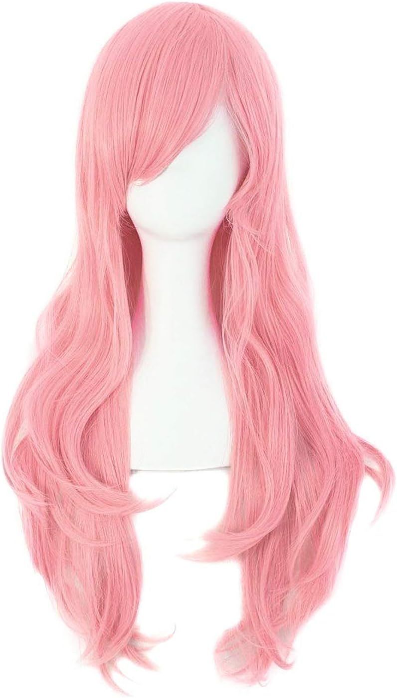 28" 70cm Long Curly Hair Ends Costume Cosplay Wig (Pink)