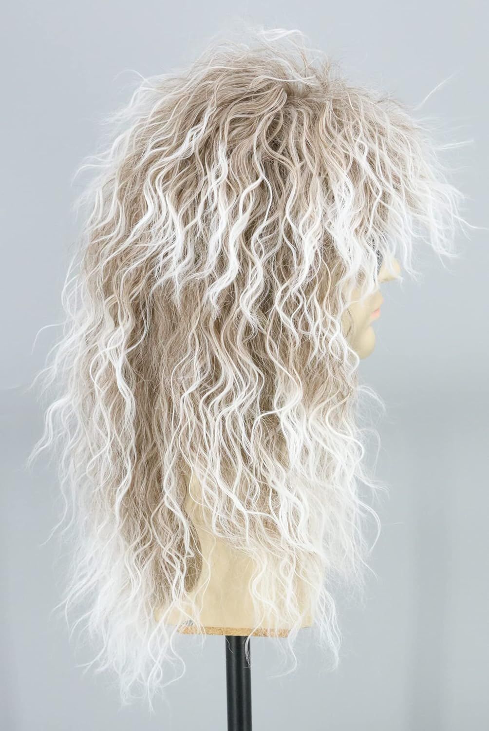 80s Mullet Wig for Men and Women Rock Disco Wigs Long Curly Brown Gradient White
