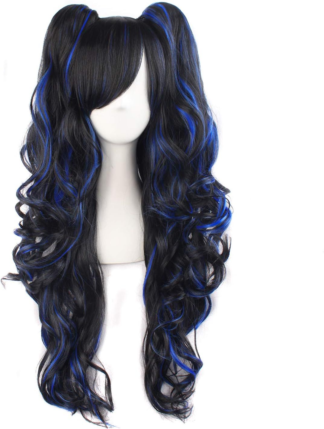 Multi-color Lolita Long Curly Clip on Ponytails Cosplay Wig (Black/Blue) Multi-color Lolita Long Curly Clip on Ponytails Cosplay Wig (Black/Blue) Multi-color Lolita Long Curly Clip on Ponytails Cosplay Wig (Black/Blue)