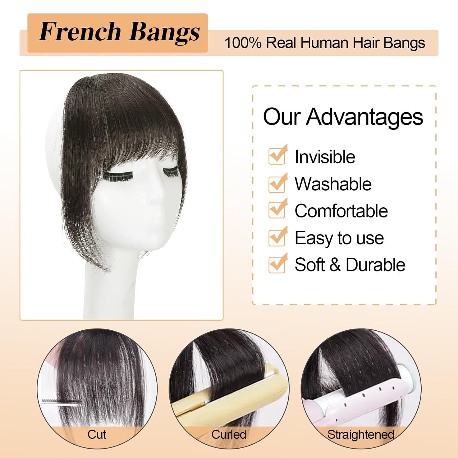 1.Natural & Blend Well: The clip in bangs are made with high quality human hair, which allows them to blend seamlessly with your natural hair. They are designed to look and feel like real hair, making them undetectable once clipped in.