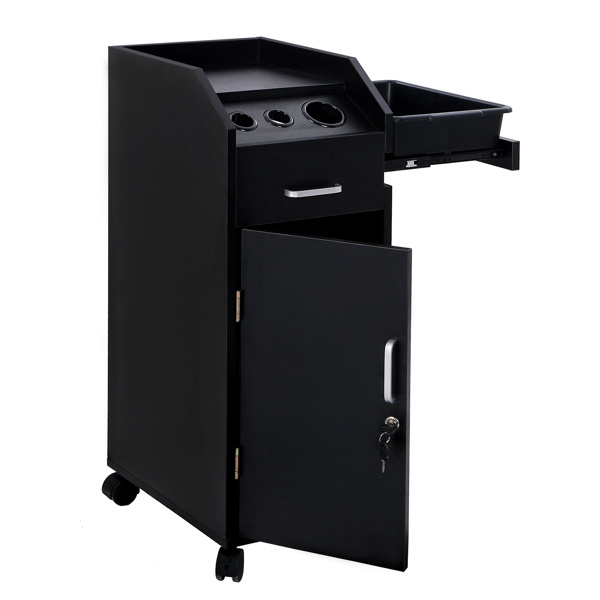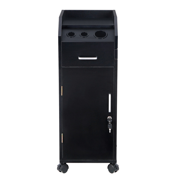 Home > Hair Salon Storage Cart with Wheels & 3 Hair Dryer Holders & 4 Drawers & Lock & 2 Keys, Hairdressing Tools Station Mobile Makeup Case Black