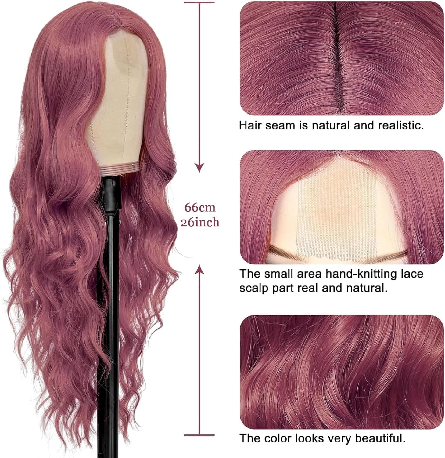 28 Inch/70 Cm Pink Long Wavy Curly Wigs For Women Middle Part With No Bangs Synthetic Fiber Curly Charming Women Fashion Wig For Daily Wear Cosplay Ma