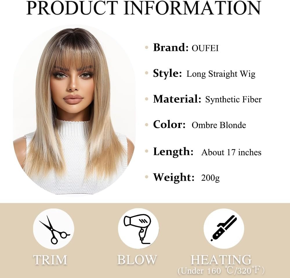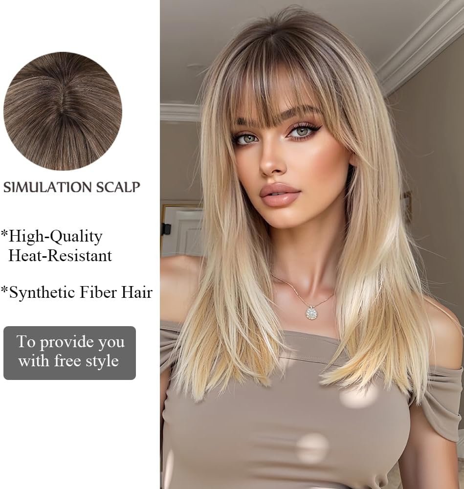 Ombre Blonde Wigs for Women Medium Length Long Straight Wig with Bangs Synthetic Hair Heat Resistant Wigs for Everyday Party Cosplay Wear Ombre Blonde Wigs for Women Medium Length Long Straight Wig with Bangs Synthetic Hair Heat Resistant Wigs for Everyday Party Cosplay Wear Ombre Blonde Wigs for Women Medium Length Long Straight Wig with Bangs Synthetic Hair Heat Resistant Wigs for Everyday Party Cosplay Wear
