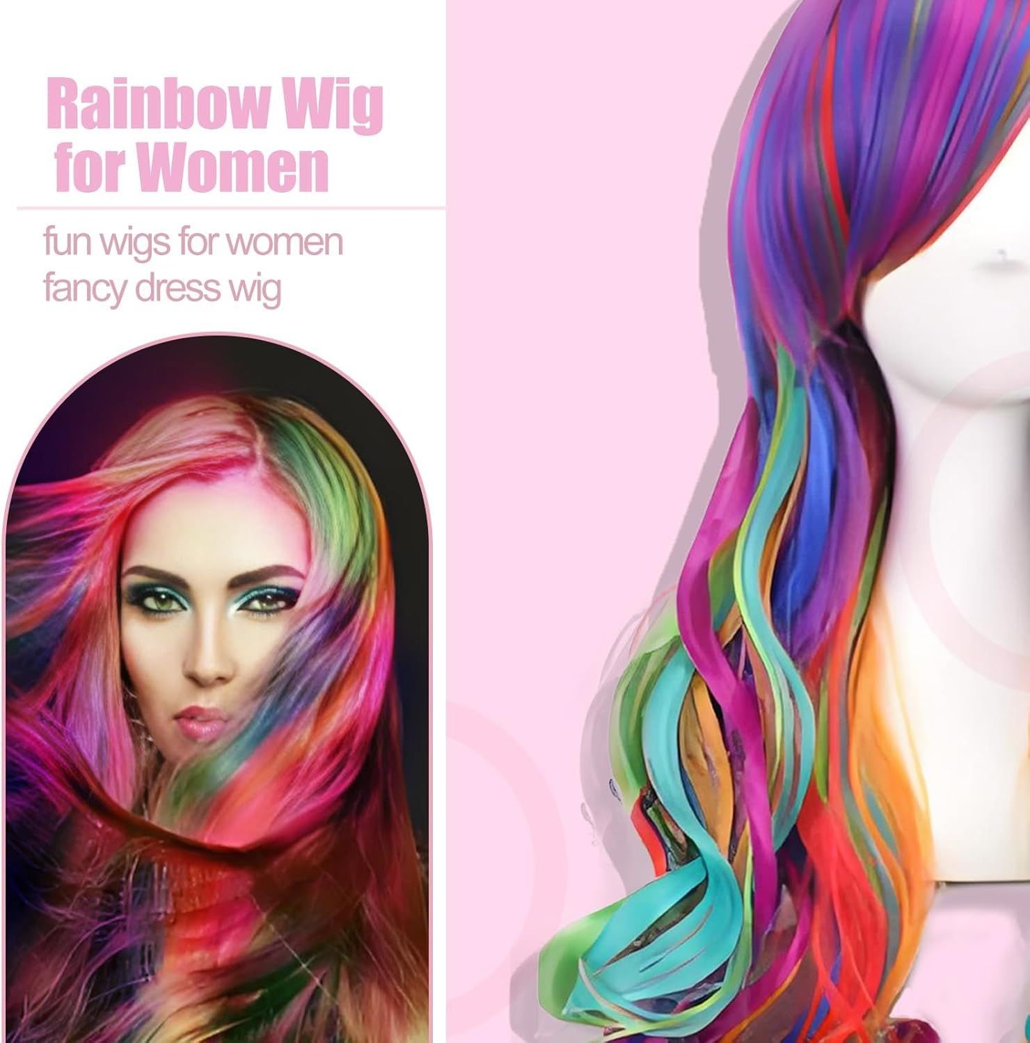 Rainbow Wig for Women- 65cm Crazy Wig for Women Long Hair, Perfect for Cosplay Parties, Party Performances Themed