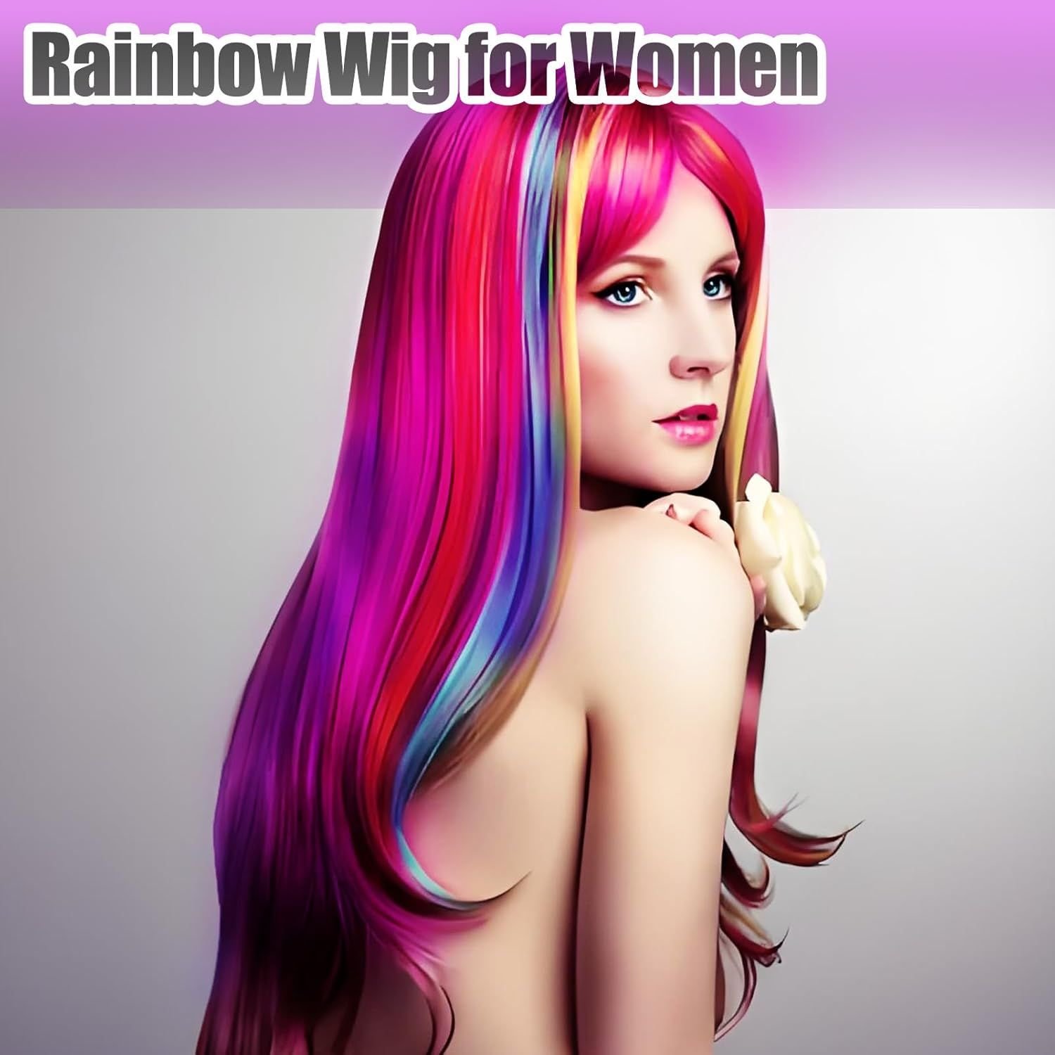 Rainbow Wig for Women- 65cm Crazy Wig for Women Long Hair, Perfect for Cosplay Parties, Party Performances Themed, Events Costume Events & Festival Outfits