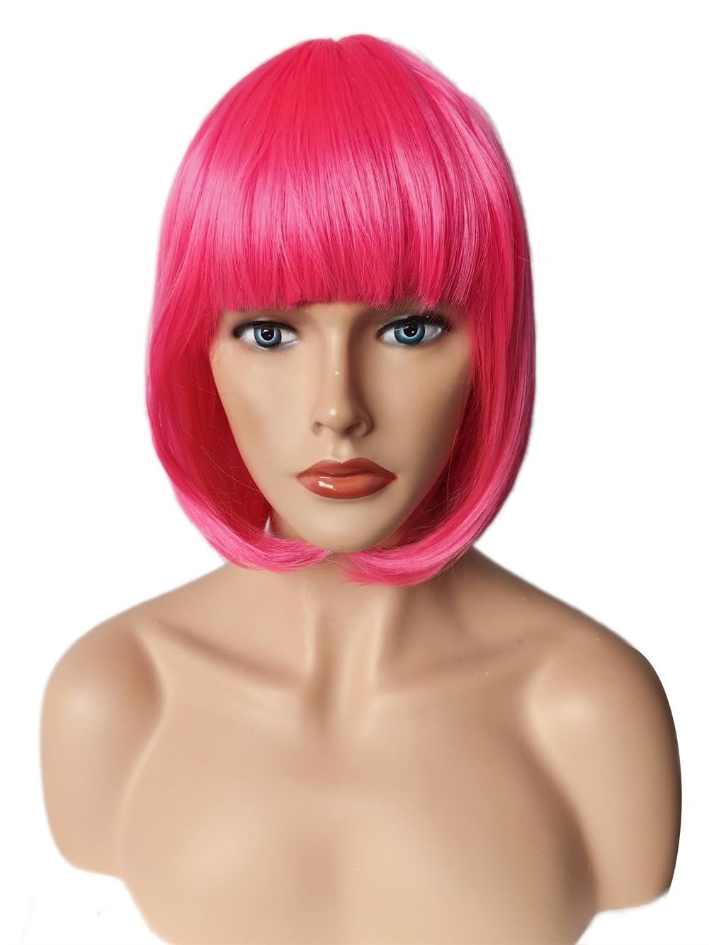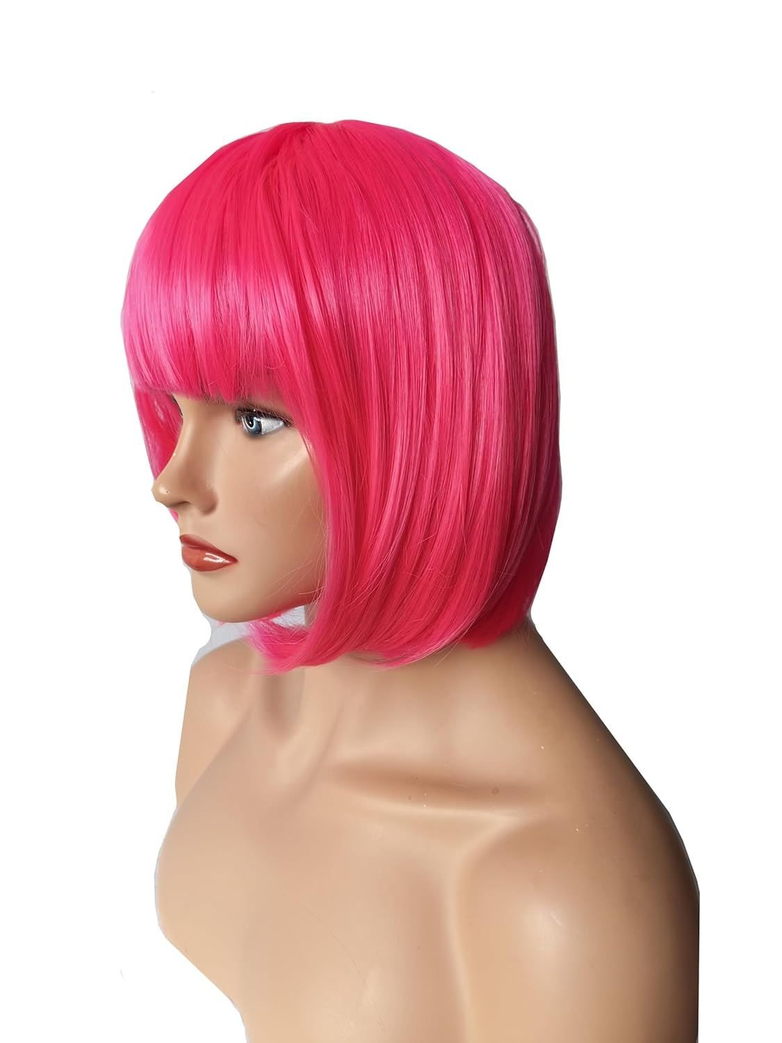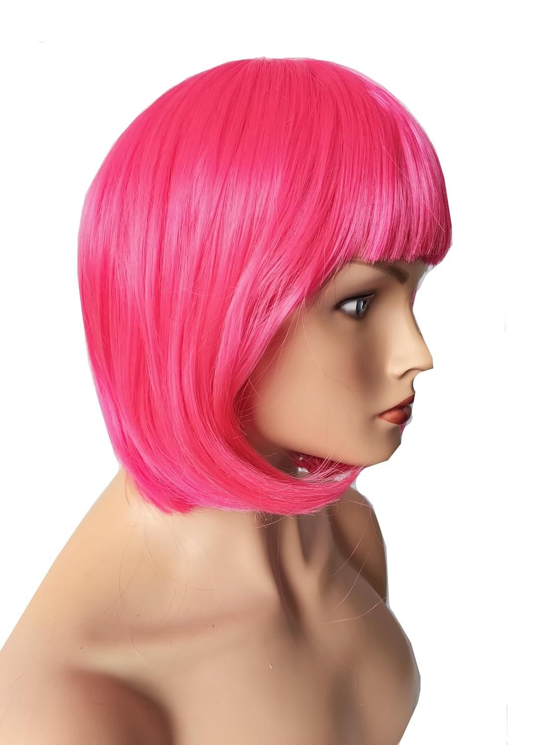 Home > Women Short 11.81''/30cm Hot Pink Bob Straight Multifunction Synthetic Hair Cosplay Wig, Flat Bangs Bob Wig (Hot Pink)