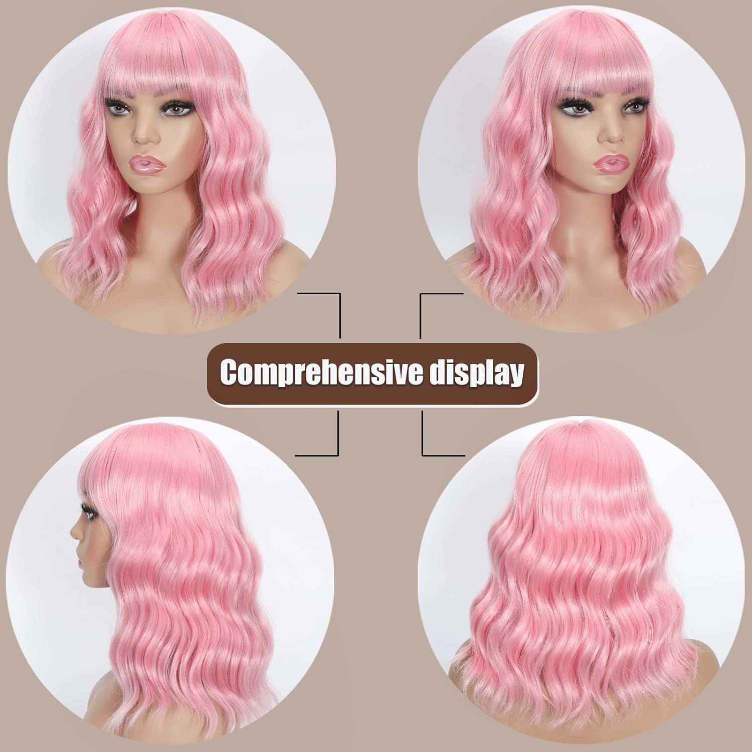 Home > Pink Bob Curly Wig Synthetic Short Wavy Wig with Bangs Natural Looking Heat Resistant Fiber Hair for Cosplay Wig (Pink, 14 inch)