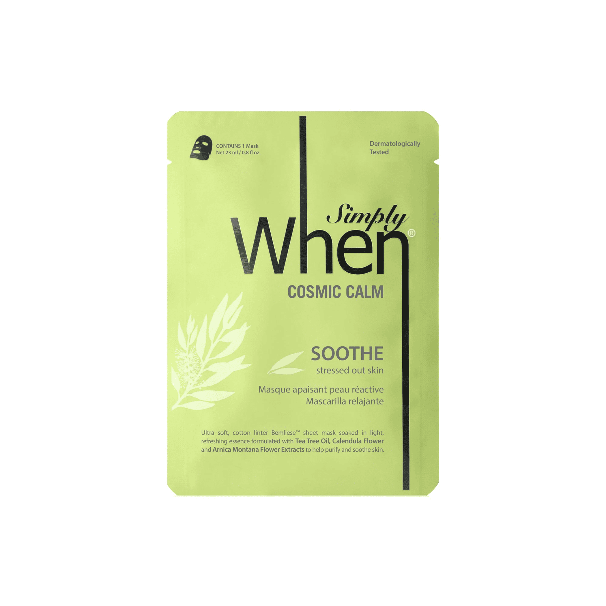 When your skin is stressed out, turn to Simply When Cosmic Calm Soothe Cotton Linter Sheet Mask.
